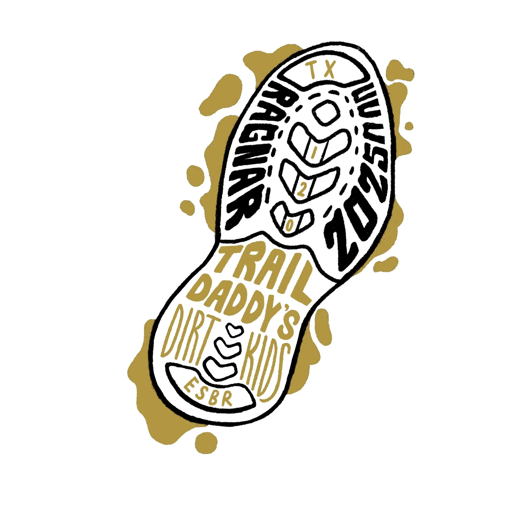 Logo design for the East Side Beer Runners (ESBR) mixed gender relay team, “Trail Daddy’s Dirt Kids” at Ragnar North Texas, 2024. Design by Thira Rose, 2025.