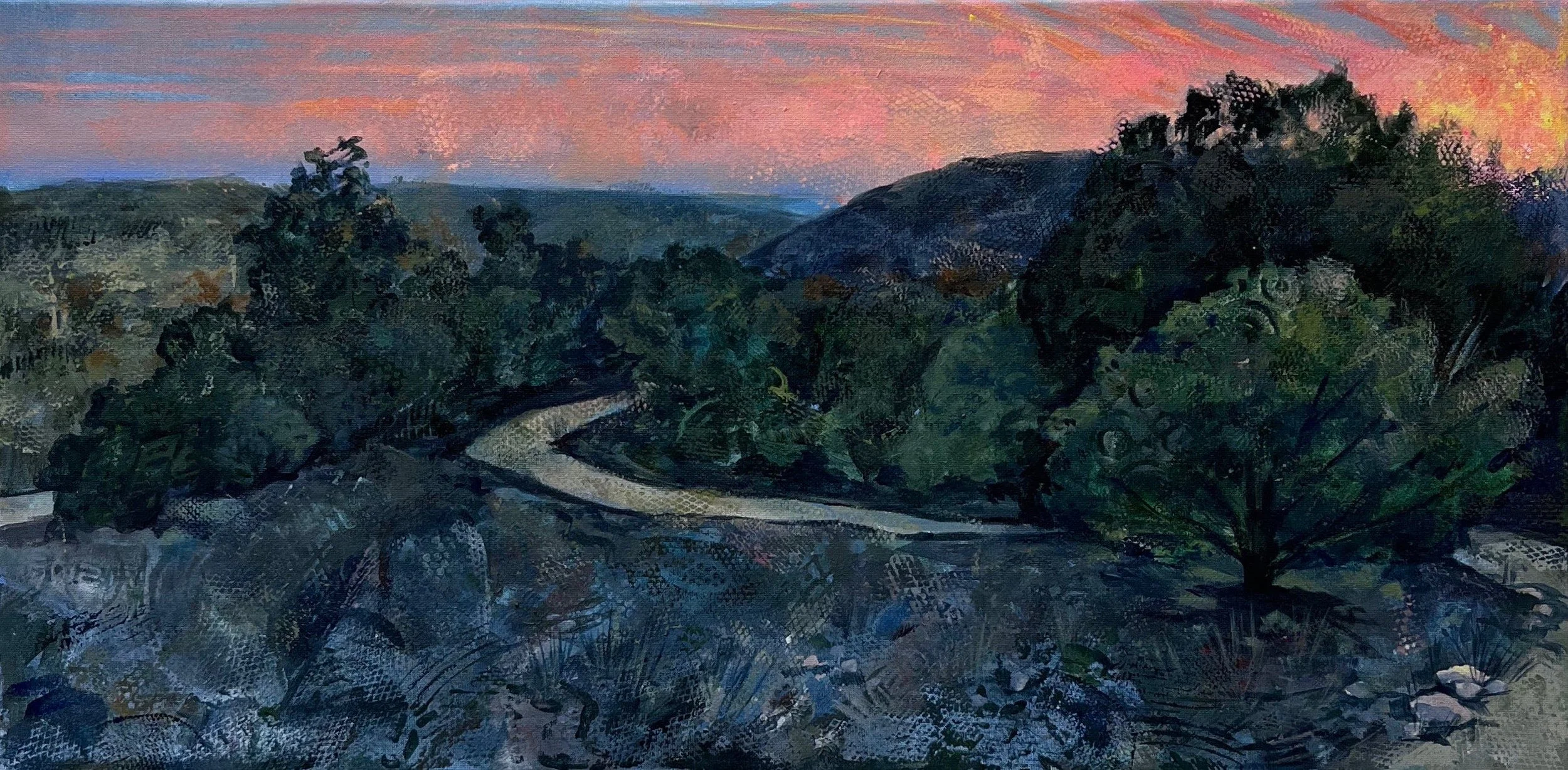 "Run Over The San Gabriel River," Acrylic on wood panel, 3” x 4.5”, 2024